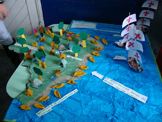 A Turma Joaninha ( Educação Infantil) mostrou uma produção textual coletiva sobre os índios e a maquete do "Brasil e o descobrimento":