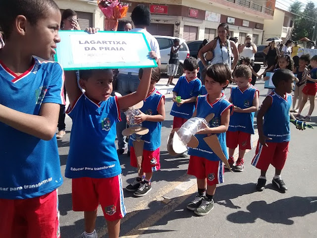 Nós participamos do Desfile Cívico do dia 26 de maio, comemorando os 201 anos do Município de Maricá.Apresentamos o tema "Restinga, meu lugar, nossa História", pois nossa escola fica localizada ao lado da Área de Proteção Ambiental da Restinga de Maricá (APA).